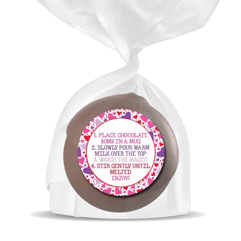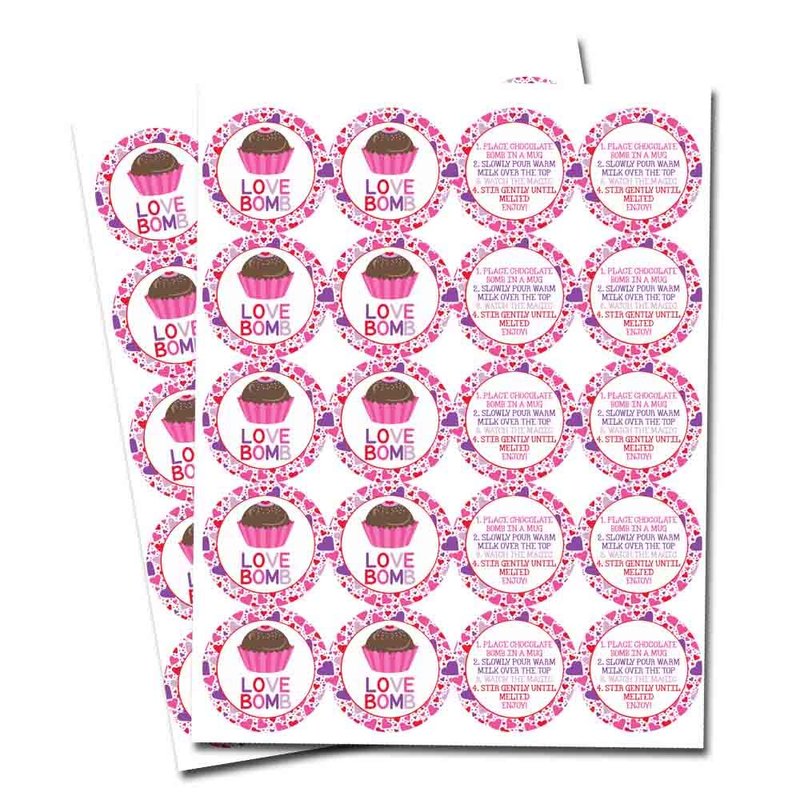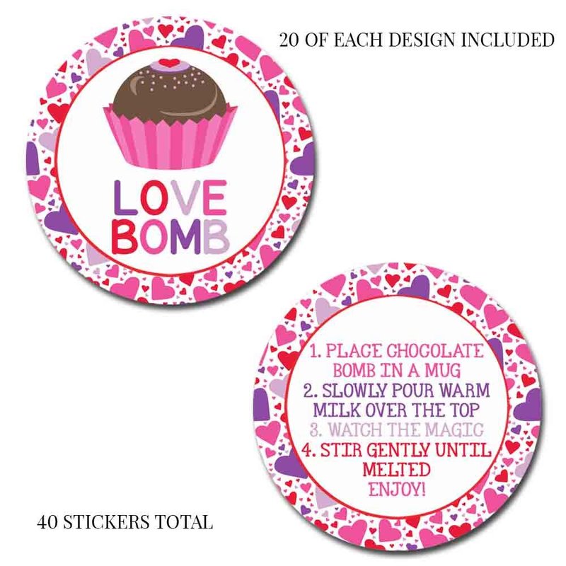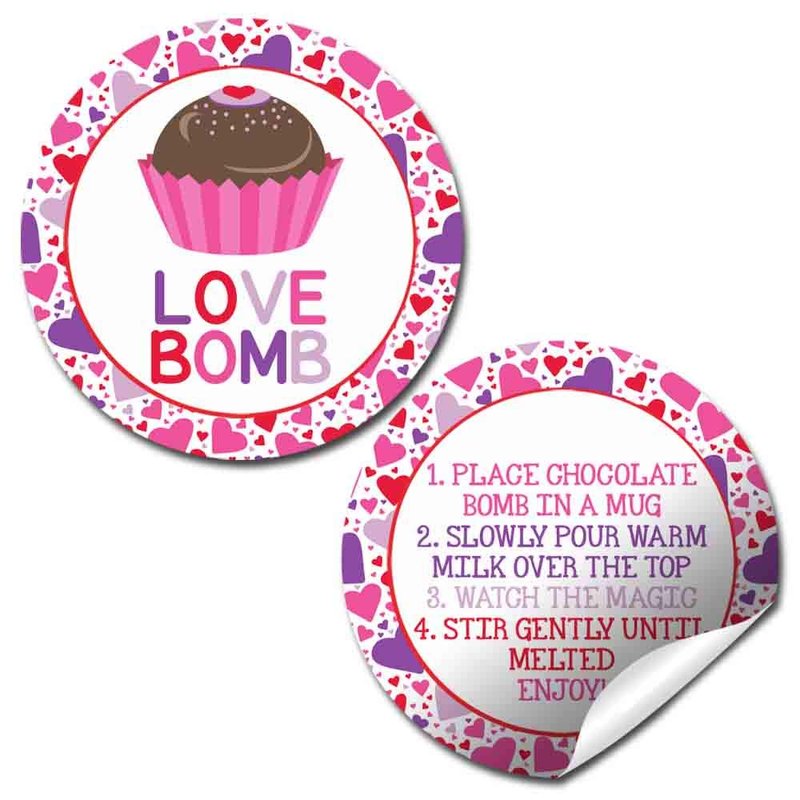 - Cocoa Bomb Overload: Hot cocoa bombs are all the rage! Giving some out as Valentine gifts and want your packaging to stand out? Designed by a talented mom, these fun stickers feature festive hearts on 1 sticker, with a 2nd coordinating sticker (containing detailed instructions) that is meant to go on the back of the package. These are perfect for making your hot chocolate bomb gift packs extra special for your friends & loved ones! Amanda Creation. Original design by Amanda Creation
