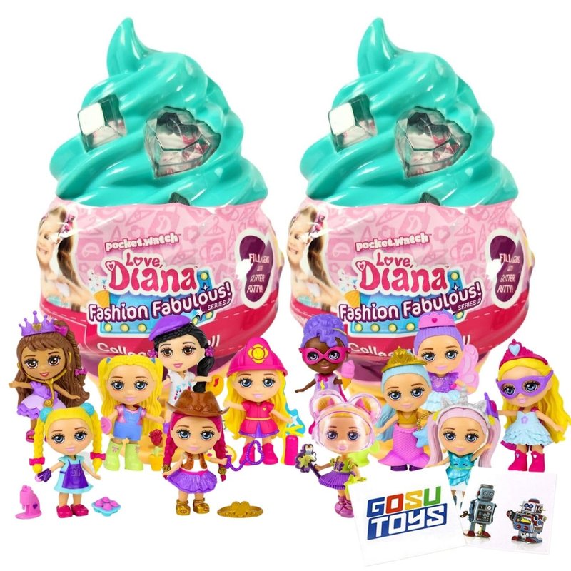 Love, Diana, Fashion Fabulous Series 2 Collectible 3.5 Inch Dolls with 2 Gosutoys Stickers - Adorable Mint Ice Cream Cones - Surprise Blind Pack- Kids Diana Show (2 Pack)