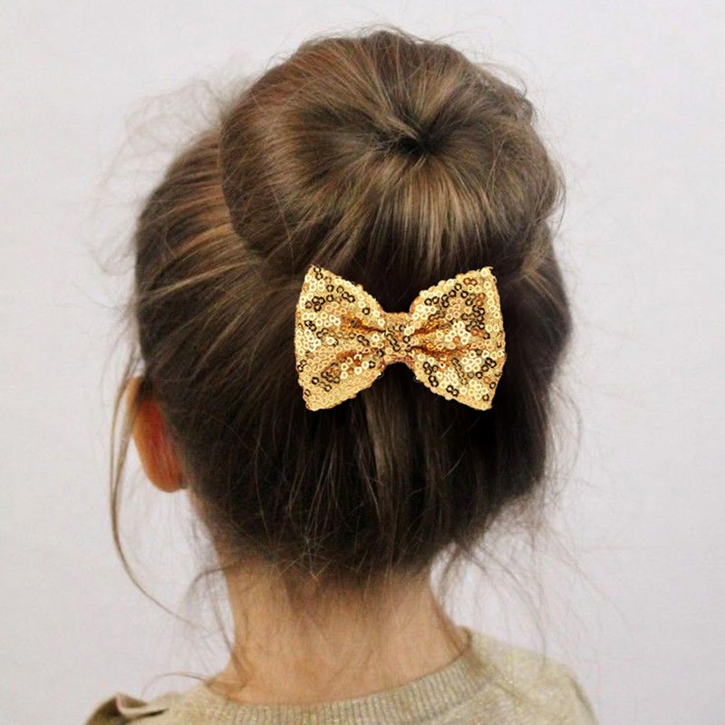 Love Fairy 3-Inch Glitter Bow Hairpin - Sparkling Sequin Bow Tie Hair Clip for Girls,Teens, and Women (Gold)