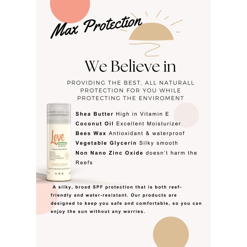 - Ocean-Friendly Formula: Love Hawaii Sunscreen is made with ingredients that are gentle on the marine environment. We are free of bad chemicals and fragrances, so it's gentle on your skin as well.