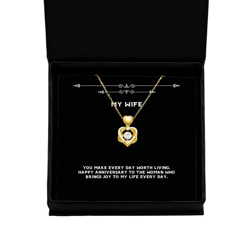 Love Wife Gifts, You Make Every Day Worth Living. Happy Anniversary to The, Funny Heart Knot Gold Necklace for Wife from Husband, Recycled, Upcycled, Ecofriendly, Sustainable, Zero Waste