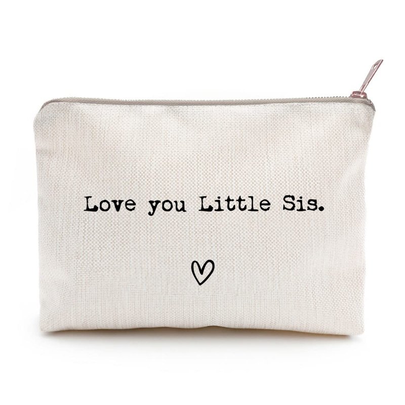 Love you Little Sis, Sister Gift, Missing You, Send Love, Makeup Case, Toiletry Bag, Gift for Friend, Makeup Bag for Little Sis, Sister Birthday Gifts