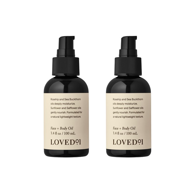 Loved01 Face & Body Oil, Daily Deep Hydration, Formulated with Rosehip and Sea Buckthorn Oils, 2-Pack (3.4 oz each)
