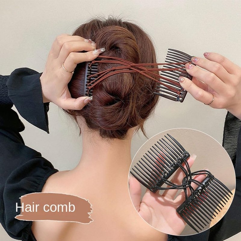 2 Pieces stretchy double comb hair clip adjustable elastic hair comb no crease hair pins hair accessories for women curly thick wavy hair ponytail