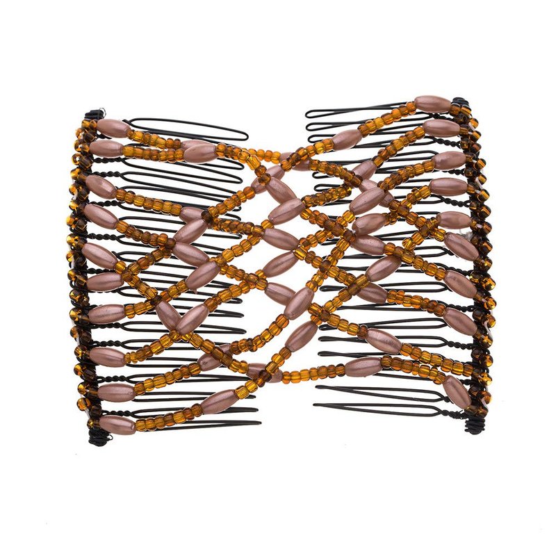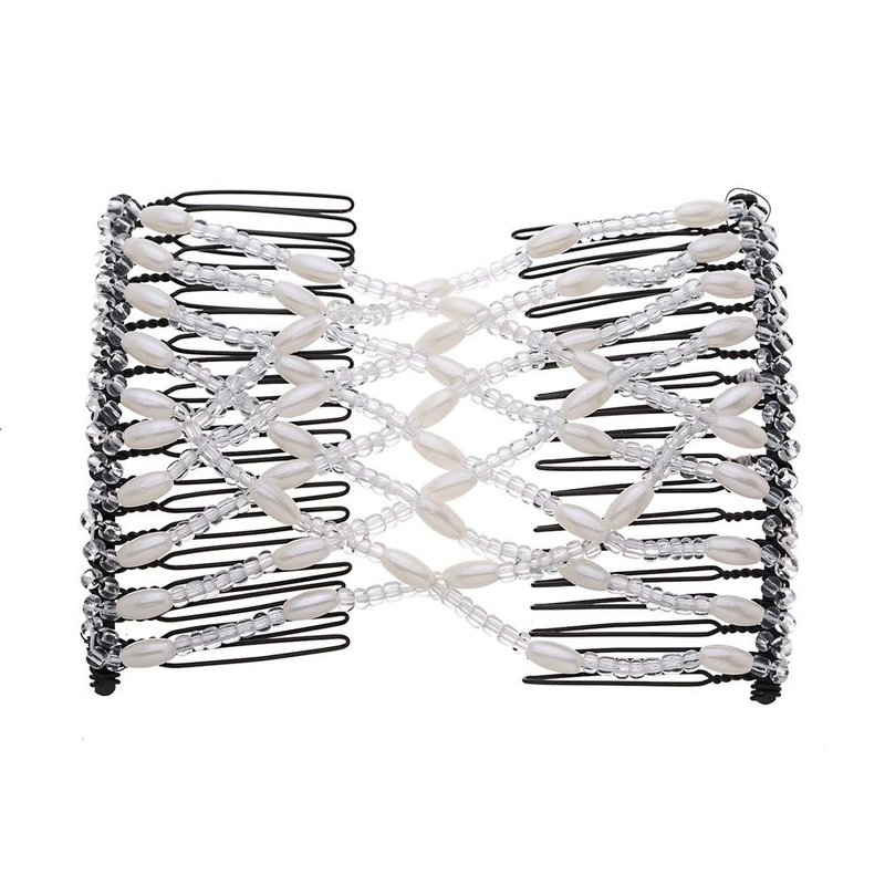 LOVEF Women Magic Hair Comb Bead Stretchy Hair Combs Double Slide Metal multifunctional Comb Clip Hairpins For women-4pcs