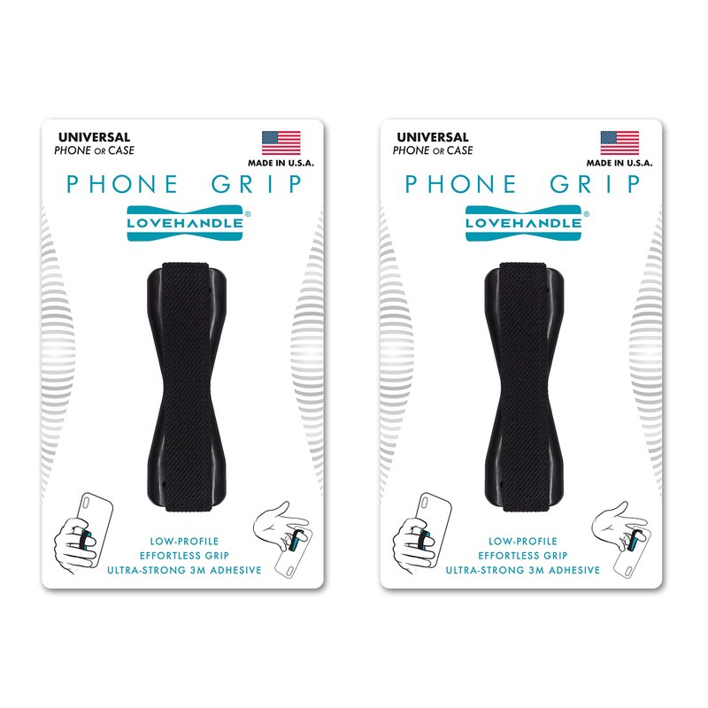 LoveHandle Universal Grip for Most Smartphones, Mini Tablets and Cases, Black Elastic Strap with Black Base, Pack of 2, LH-01-2PackBlack