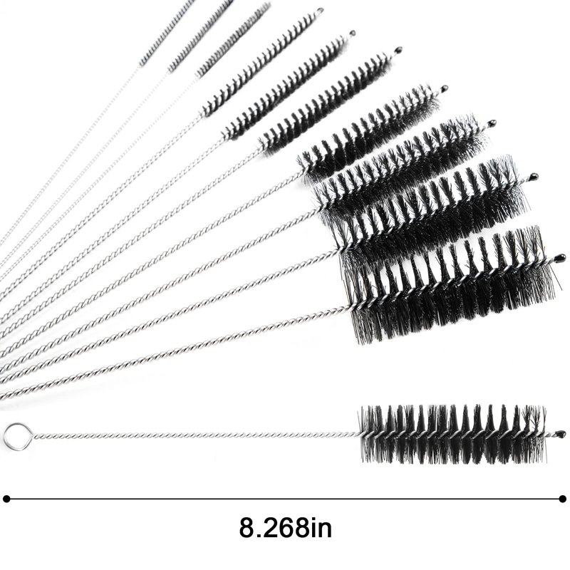 - Different Size - You will get 10PCs nylon tube brushes, with different diameters ranging from 1/16 in to 1 in, you can always find a fitted one to clean any kind of bottles and pipes. Easy to get into hard-to-reach spaces, and no more remaining dust.