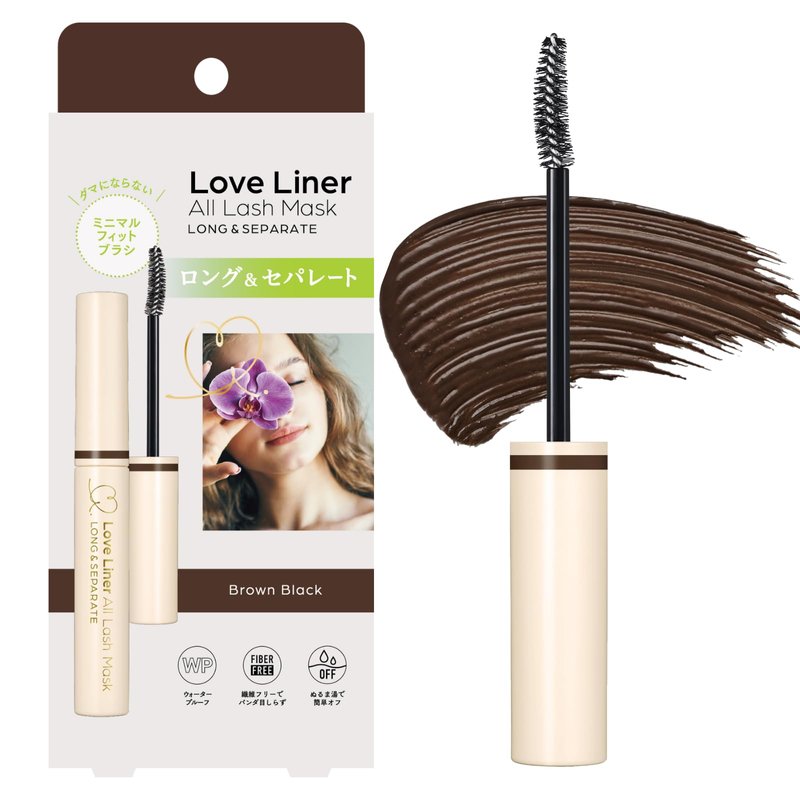 LoveLiner Waterproof Mascara, Resistant to Sweat, Sebum & Tears, Precise & Fiber-Free Curved Brush, Japanese Eye Makeup w/Beauty Serum, 1.05 Oz/30g, Brown Black