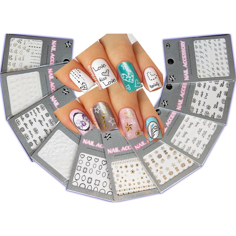 - ♥ SUPER-ADORABLE 3D NAIL DECALS: 10 sheets. The design variety will set you on the great journey creating your fantasy nails and will last for a long time