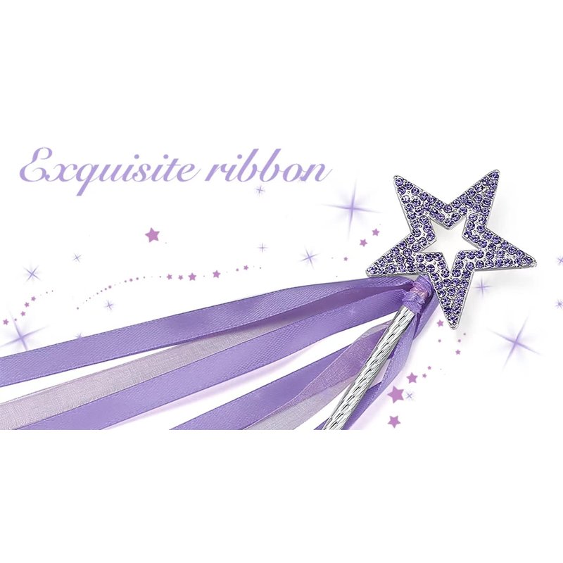 Lovelyshop Lavender Crystal Metal Star Fairy Wand with Ribbon for Girls Halloween Decorations