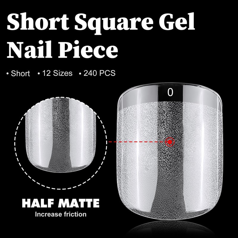 - Gel x fake nail tips are tapered square shape, pre etched with half matte,don't need base nail coat or polish. easy to diy stylish square manicure without go to nail salon. Short square gel nails, make your nails look natural but stylish.