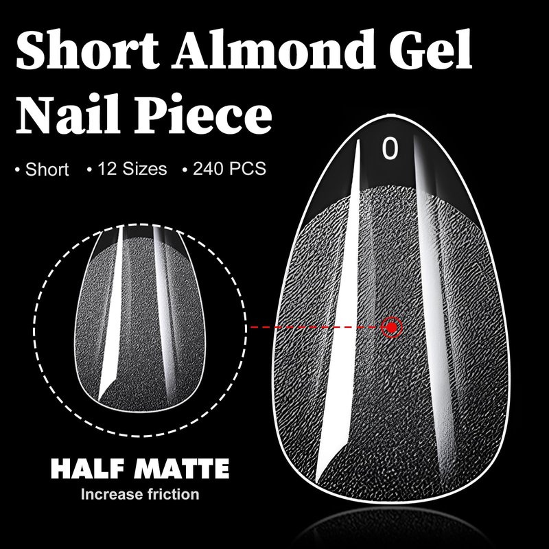 - Gel x fake nail tips are almond shape, pre etcheed with half matte,don't need base nail coat or polish. easy to diy stylish almond manicure without go to nail salon. Short almond gel nails, make your nails look natural but stylish.