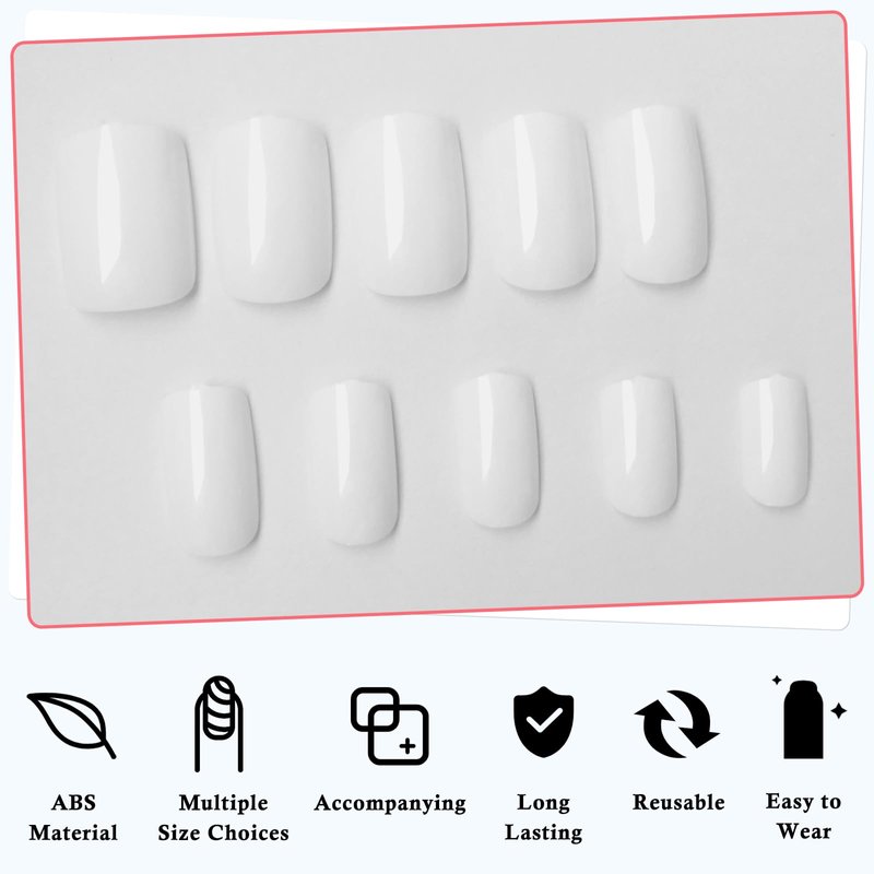 - Re-shapable Square Fake Press on Nails: Short press on nails square artificial fingernails with perfect short length, short glue on nails won't affect daily life and work that you can wear these press on short nails to work, typing, writing, painting, doing house work, playing games. Short length press ons nail square can suitable for any occasions, events and season. Trendy and classic white color press on nail kit help you achieve nail freedom at home.