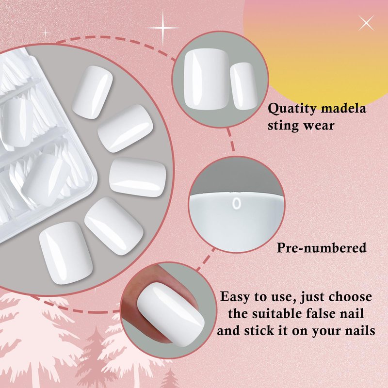 - Multiple Uses: Square press ons designed with short elegant square shape, At the tip, square nails are squared off rather than rounded, giving white nails a modern and edgy appearance. Short square presson on nails can wear with nail glue or nail sticker directly. Short length square nail won’t affect daily life and work, you can wear white glue on nails to type, write, swim, do housework, paint, work, sturdy, play with pet etc. Short white nails suitable for any seasons and occasion.