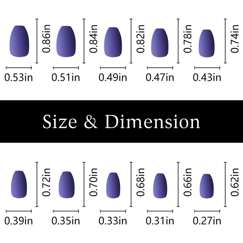 - Full well and cover press on coffin nails designed in 10 different sizes (0-9) for your different fingernails, size0,1,2,3,6,7,8,9 are 2pc nail tips each size and color, size 4 and size 5 are 4pc tips. Total 360pc press on short nails. matte coffin nails packed in clear plastic box, they are convenient to choose the suitable size nail tips for each finger nails, case press on nails package ready for beauty nai art gift giving.