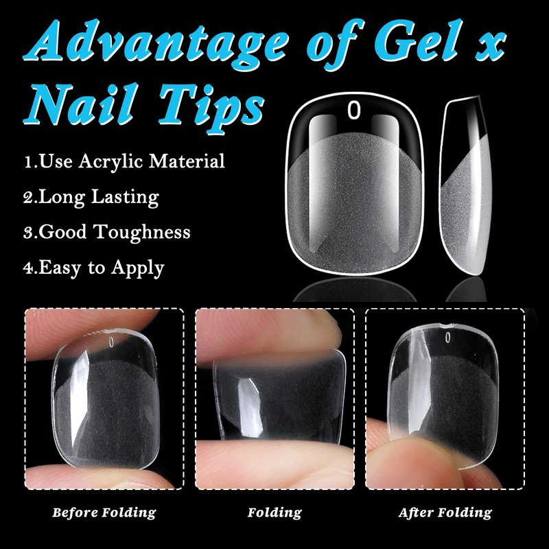 - Practical Short Length Square Gel x Tips: Clear square gel nails short length are full coverage design, full cover nail tips can cover and well fit natural nail bed firmly and evenly. Short gel x tips round square nails provide ease of use for daily activities. Short gel x nails won't affect normal life and work that you can wear short square gel fake nails to typing, cooking, cleaning, gardening, playing with your pet. Short square shape clear false nails tips make your manicure stay flawless.