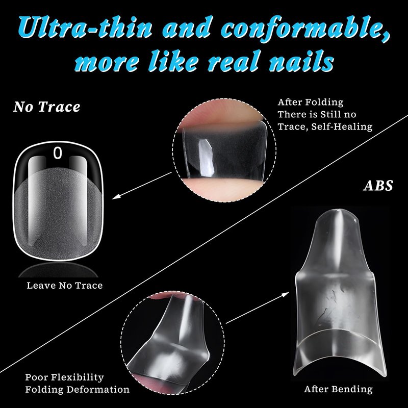 - Soft Gel Nail Tips: Gel x square nail tips are crafted with trendy square shape. Round square fake nails can elongate your hands and fingers for a graceful look. Extra short square nail tips with half matte for incresing friction, pre-shape square gel x tips can grip your natural fingernails, you can apply nail glue on square nail tips gel nails for nail extensions without file nail, reduce damage to your normal nails. Square shape clear nail tips popular choice for nail enthusiasts and manicurist.