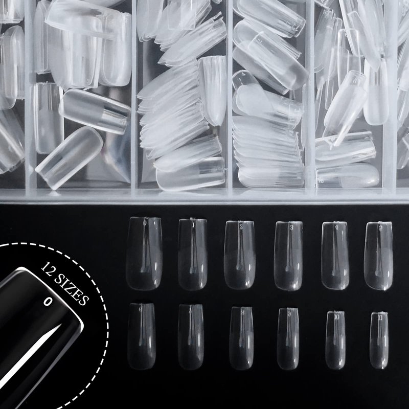 - Clear medium length square nail tips for acrylic nails professional includes 600pc soft gel half matte straight square shaped fake nail tips with clear case.