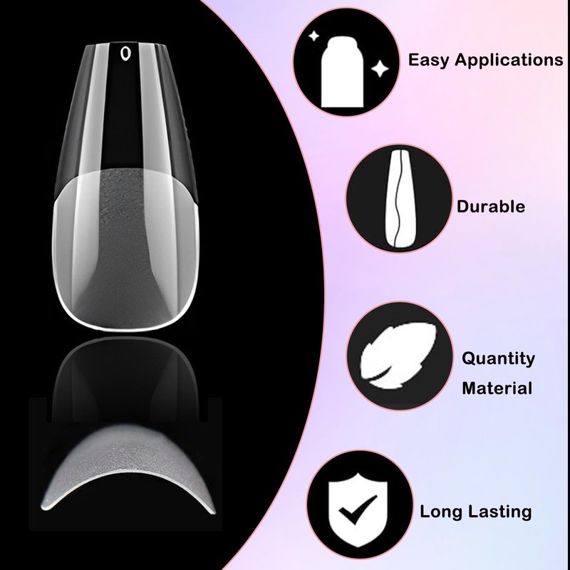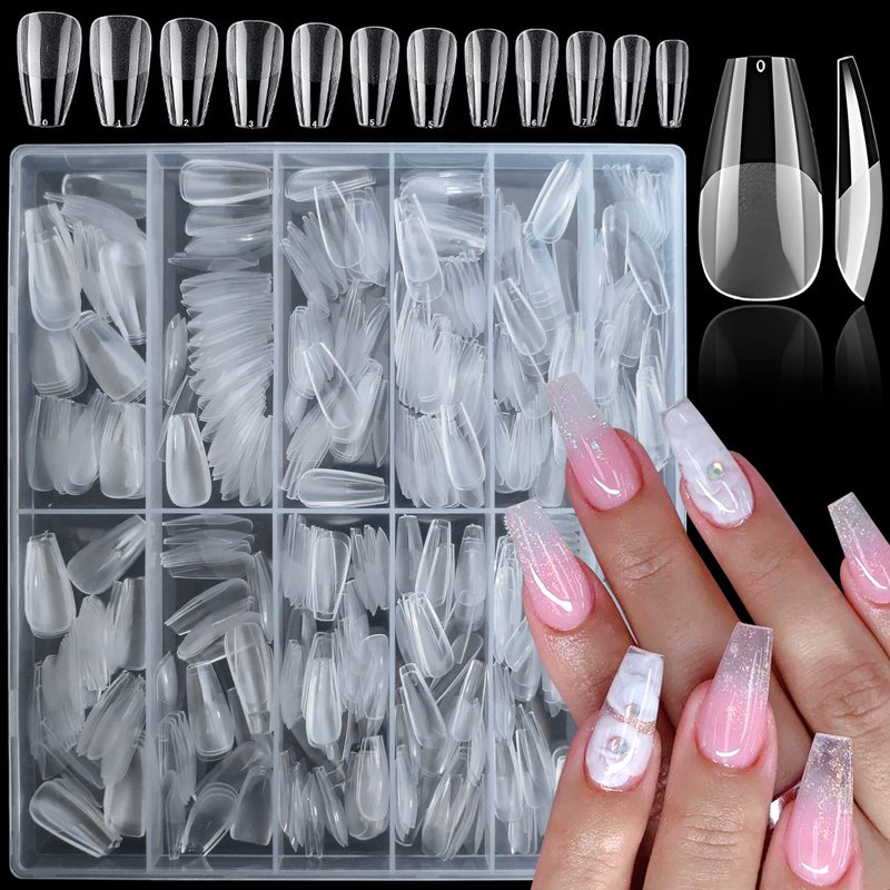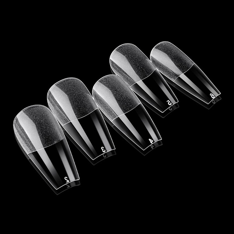 - Clear gel x nail tips are medium ballerina coffin shape, full coverage design gel nail tips. Full cover nail tips featured with 12 different size pre-numbered from 0-11 for wide/medium/flat/curve/small beds fingers, 50pc coffin nail tips per sizes. Total 600pc gel x nail tips in 12 grid gel x nail kit. Full nail tips clear fingernails are convenient to choose the best size gel nail tips to fit your every finger nails.
