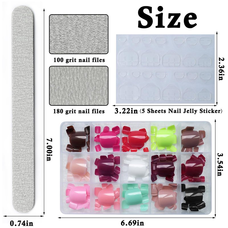 - ⭐Colored toe press on nails are easy to apply, you Will get salon effect in few minute, just clean your natural toenails, apply strong nail glue/adhesive tabs on fake nail tips, then put on the false nails and press on them for few seconds, file the top of the toenails to make it more smooth, a stylish manicure is done!