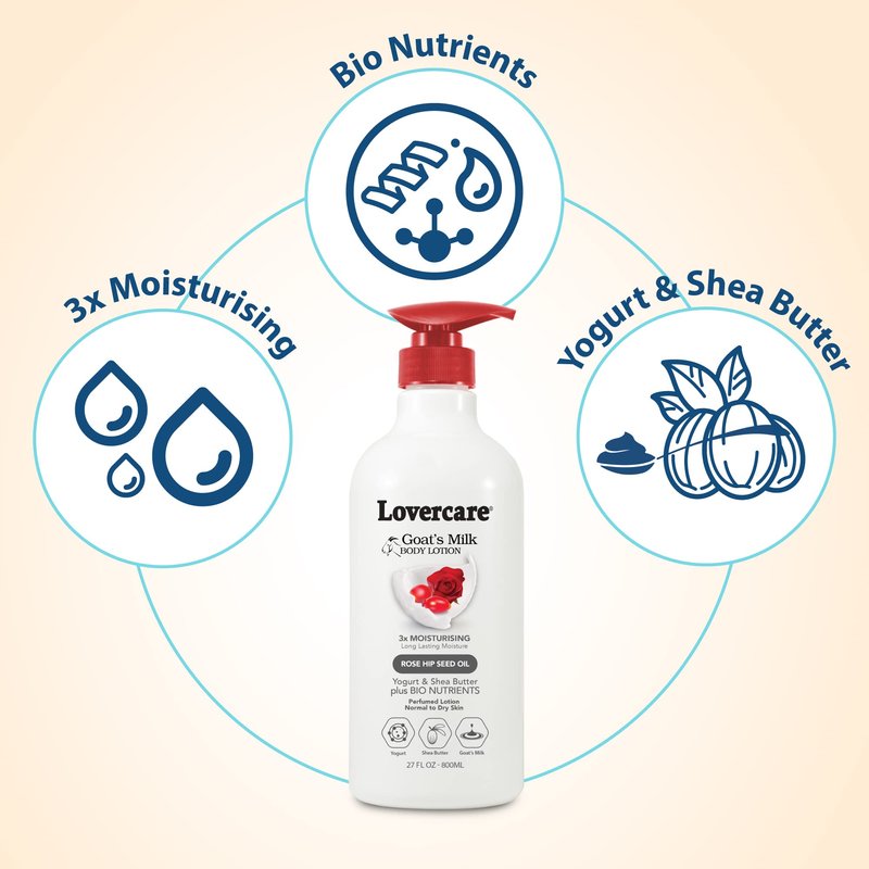 Indulge yourself in a rich, silky smooth, creamy body lotion. Enriched with 3X Moisturizing power from Goat's Milk, with Yogurt & Shea Butter that work in harmony to provide you with the ultimate moisturization. Lover's Care Goat's Milk Body Lotion will always leave your skin soft and supple.