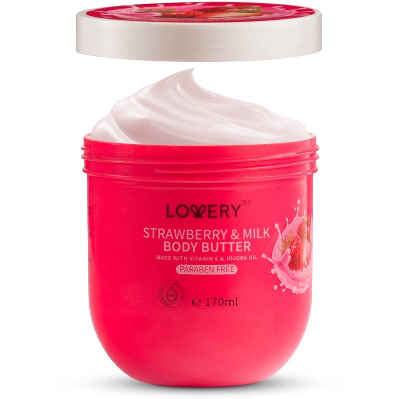 LOVERY Strawberry Milk Whipped Body Butter, 2-Pack Ultra-Hydrating Shea Butter Body Cream Enriched with Jojoba Oil and Vitamin E - Natural Skin Moisturizer for Men and Women - Normal to Dry Skin