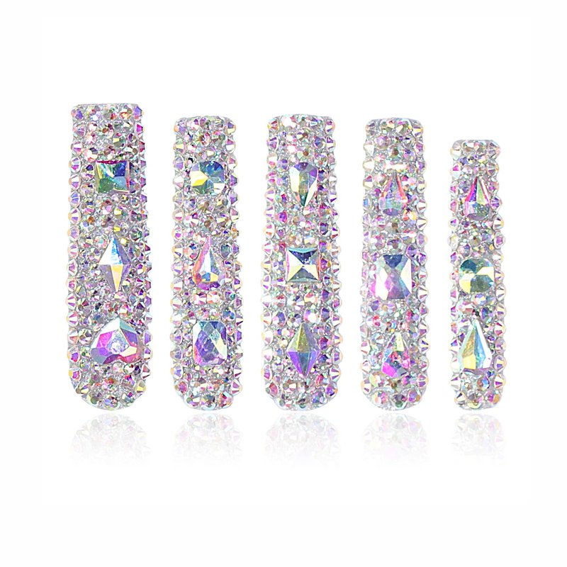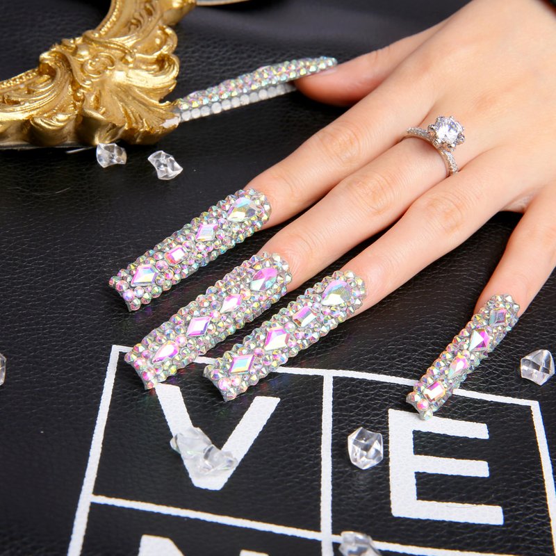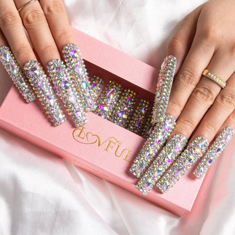 LOVFUL Press on Nails Eternal Stunning | Handmade with Full Covered Crystals | Reusable Fake Nails | Square | H46-L
