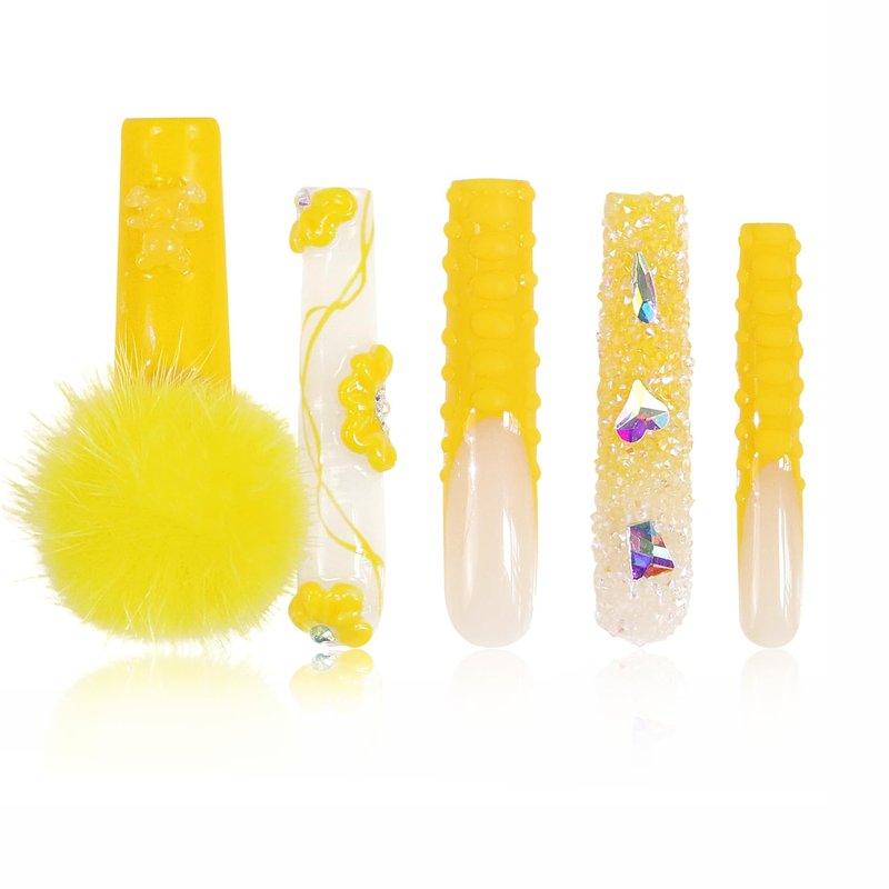 LOVFUL Press on Nails Yummy | Handmade with Full Covered Crystals | Reusable Fake Nails | 2.16in Long Square | H131-M