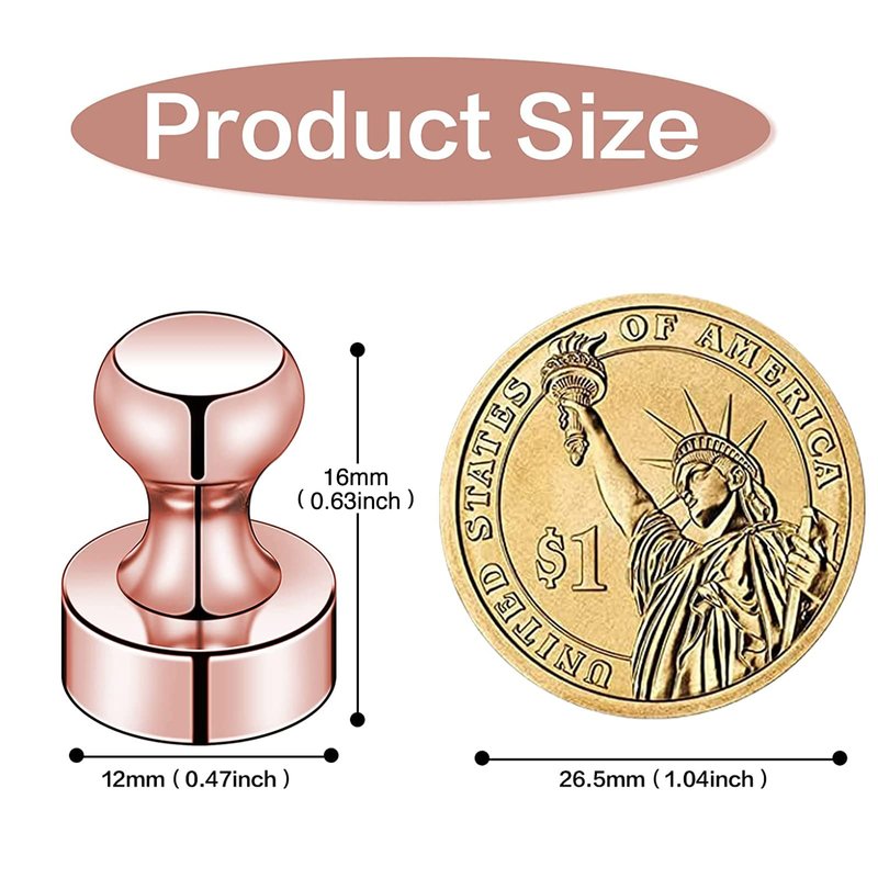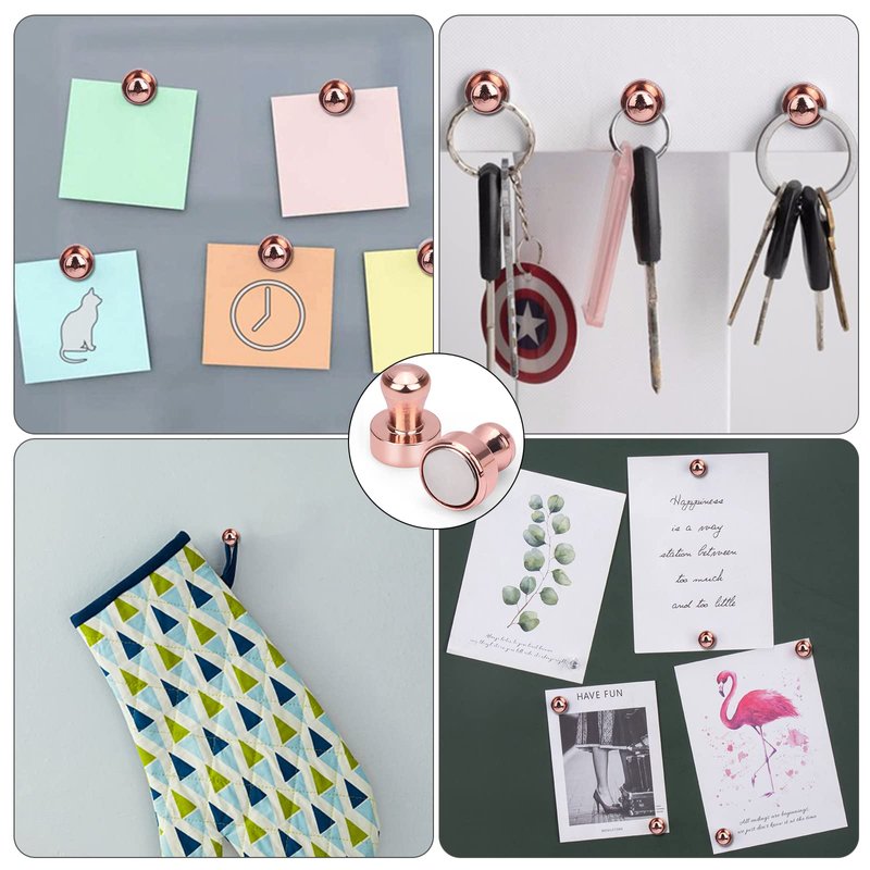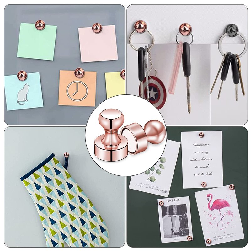 - 【HIGH QUALITY】:Fridge magnet is plated with 3 layers of protective coating- rose gold paint + nickel + copper, which greatly protects push pins magnets from corrosion and is durable.
