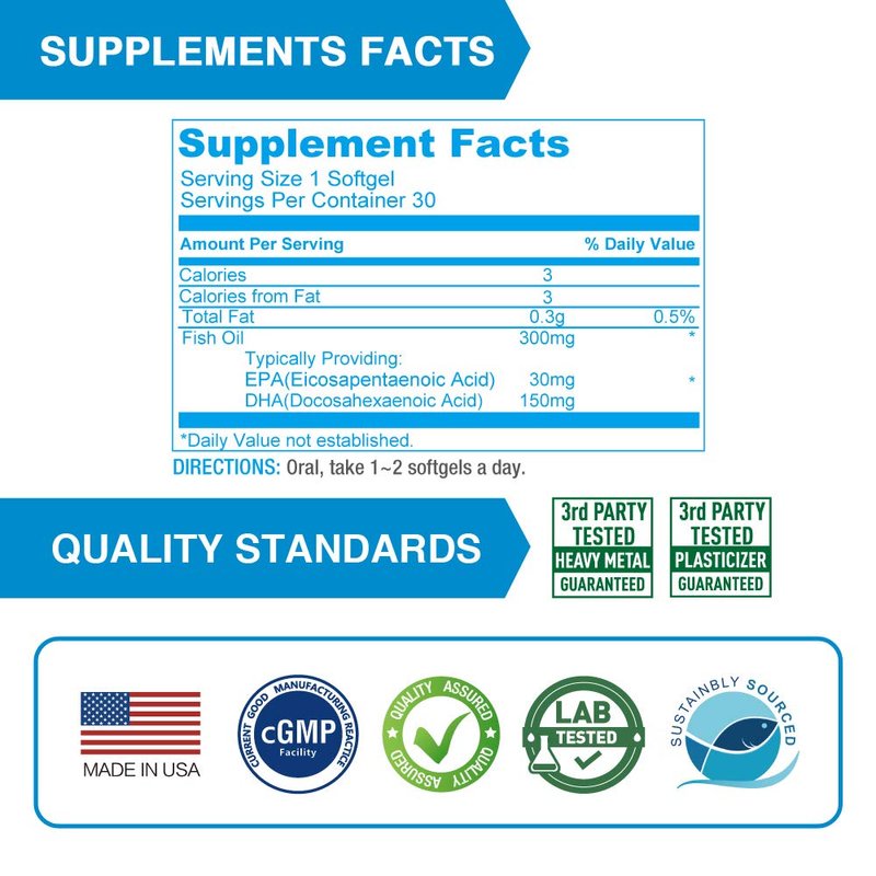 - EXCELLENT SOURCE OF OMEGA 3: Each softgel is packed with 150mg of DHA and 30mg EPA. It does not contain any artificial flavors or colors.