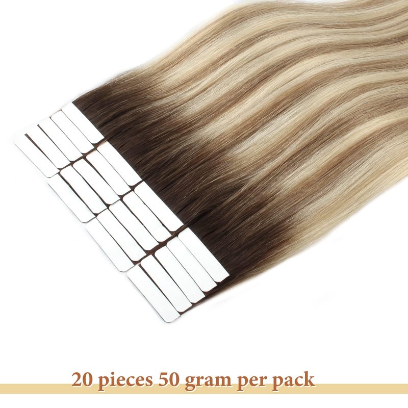 - Reusable Tape Glossy Hair: Our tape in hair extensions are made with premium remy human hair and come with double sided tape; we provide invisible replaceable tape, allowing you to reuse the extensions multiple times; they are also expertly processed to be tangle-less and shed-less, ensuring long lasting quality; with proper care and maintenance, these tape-in extensions can last for 2-3 months or even longer