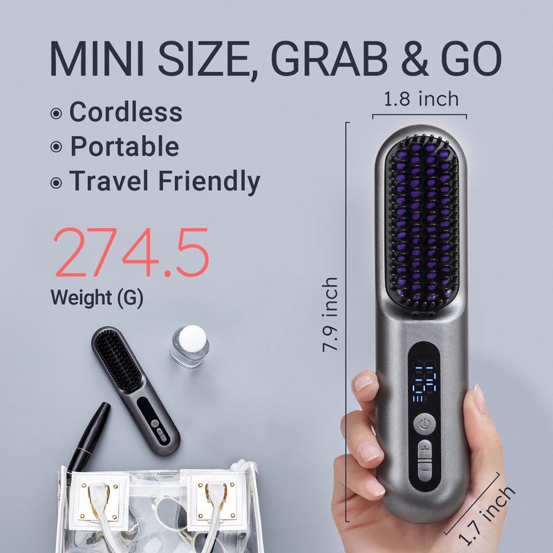 - CORDLESS & PORTABLE DESIGN - The hair straightening brush weighs only 274.5 grams, and its small and lightweight design allows you to carry it anywhere. The cordless feature means you can use it anywhere without worrying about finding an outlet or dealing with a tangled cord.