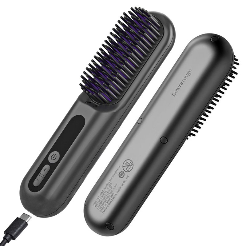 LOWRA ROUGE SL-620 Cordless Hair Straightening Comb, Wireless Hair Straightener Brush for Women, Portable Hot Comb Hair Straightener for Travel, USB Rechargeable, Anti-Scald, 9-Temp Settings