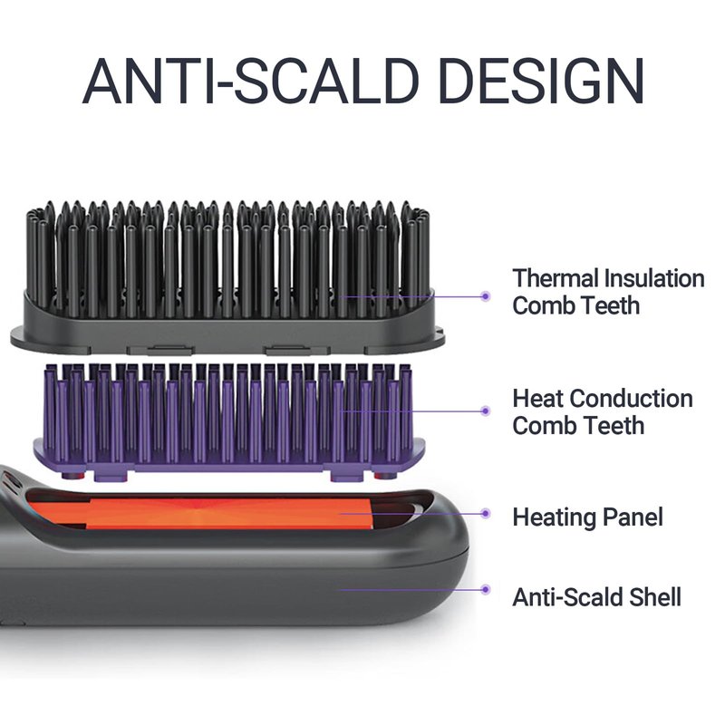 - ANTI-SCALD DESIGN - Utilizing a double-layer design for the comb teeth, the hair straightening comb effectively prevents scalding and makes it safer to use. The outer tooth comb helps prevent burns on the face, while the inner tooth comb protects the scalp.