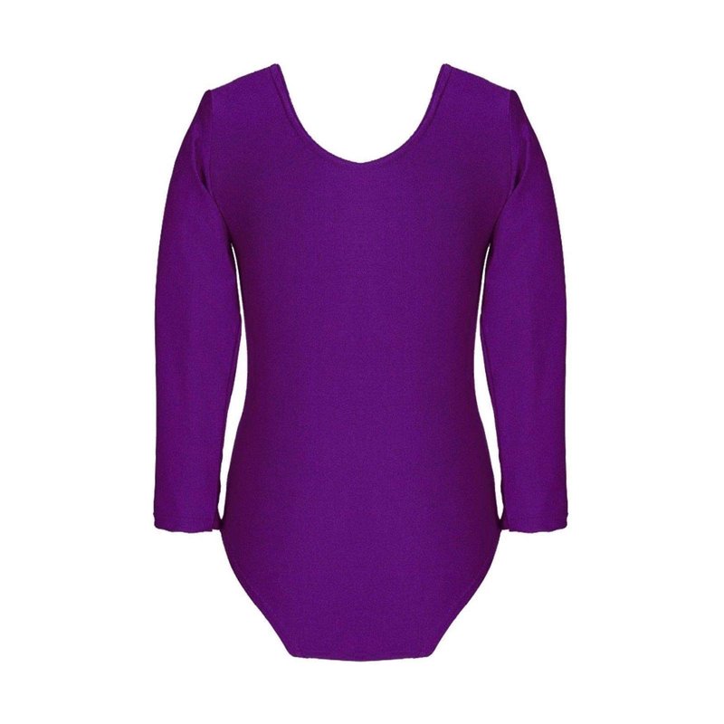 Loxdonz Girls Leotard Basic Long Sleeve Ballet Dance Leotard Kids Stretch Gymnastics Bodysuit Top (9-10 Years, Purple)