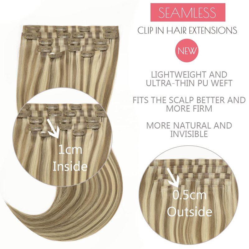 - *【The Advantages of Seamless Hair Extensions Clip in】Unlike old Lace Weft Clip in Hair Extensions, The New Tape Clip in Hair Extensions Updated Soft PU Strips-Thin Weft Edge, No Stiffs, No Shedding, Lightweight and Comfortable.
