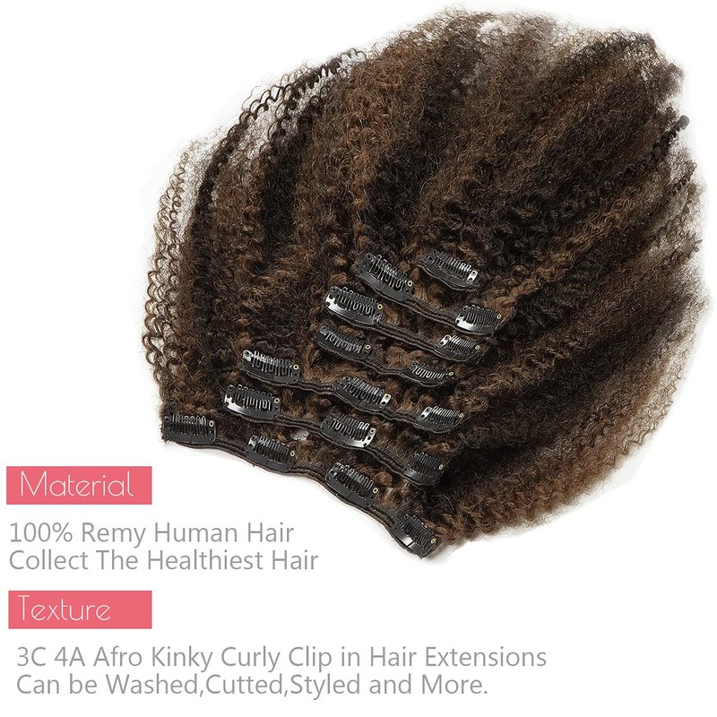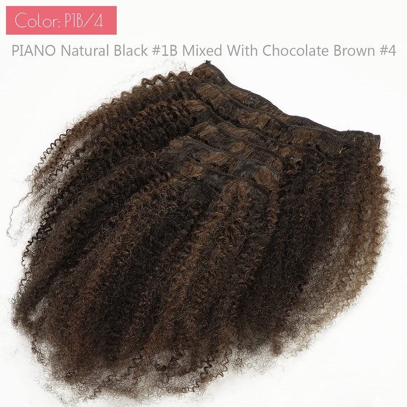 - Super Easy Using Method: The Afro Curly Clip In Hair Extension Easy Install and Take Out, You Can Make Different Hairstyles According to Your Hobby. The Color is Piano# 1b/4 Natural Black Mixed With Chocolate Brown
