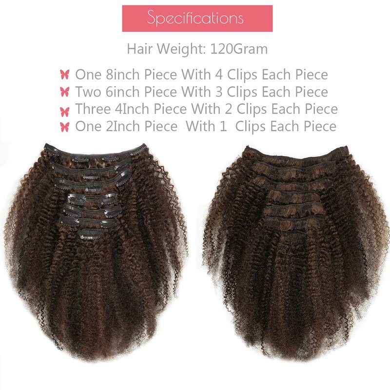 - Gorgeous Curls: The Afro kinky Curly Clip In Hair Extension Type is 3C 4A &4B Afro Curls With Lots of Volume, Which Can Play up Your Features, Making You Look More Youthful And Radiant