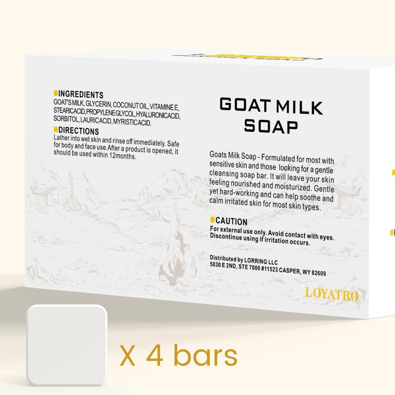 LOYATRO Goat Milk Soap Bar 4.8 oz (4 Bars) For Dry Sensitive Skin. Natural Soap For Women, Men, Kids & Baby. Great For Face & Body
