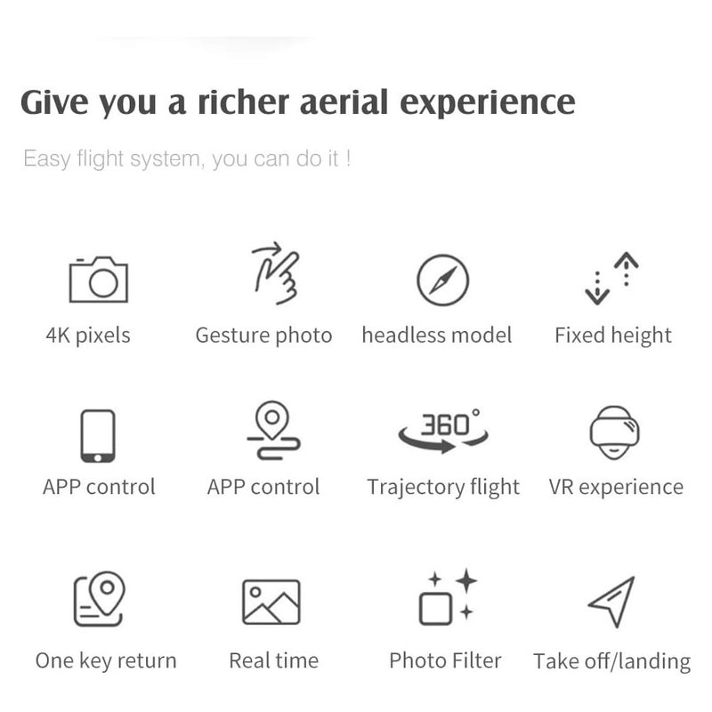 - 【ALTITUDE HOLD】 When you focus on shooting images, you may set your hands off the joystick and the drone still suspend in mid-air with locked altitude. A perfect drone for beginners, starters, or newbies to have a easy and stable flight experience.