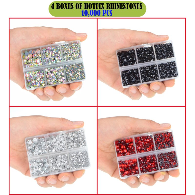 LPBeads 10000pcs Hotfix Rhinestones Flatback Glass Crystal Clear Red AB Crystal and Black Rhinestone with Tweezers and Picking Pen for Crafts Clothes Nail Art