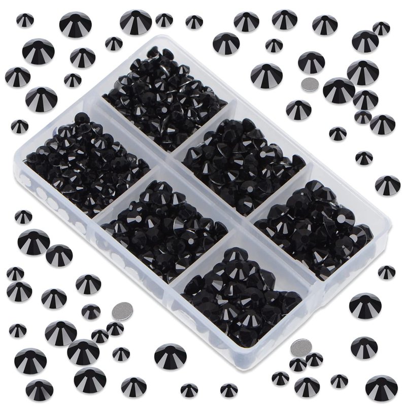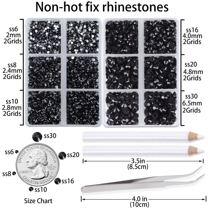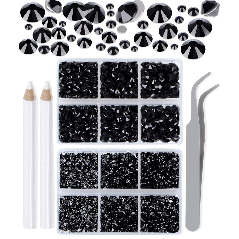 LPBeads 6000 Pieces Black Non Hotfix Rhinestones 6 Sizes Round Crystal Glass Flat Back Rhinestones with Tweezers and Picking Pen for Nail Art Crafts Clothes Bags DIY