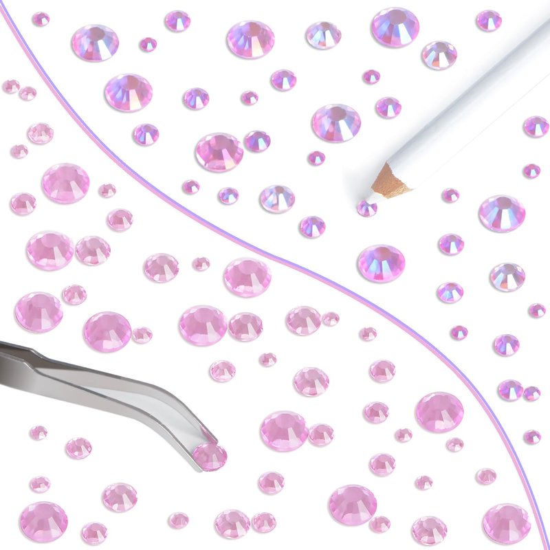 - Package includes: 3200pcs Pink and 3200pcs Pink AB flatback glass glittering hotfix rhinestones bulk in 5 sizes, with good quality tweezers and picker wax pencil.
