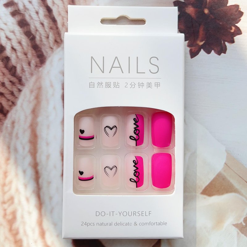 - Heart Glue on Nails: After trimming and cleaning your natural nails, select the right size of our high quality nail and apply it on your nails, then press on your nails for 10 seconds. Now you have beautiful nail designs.