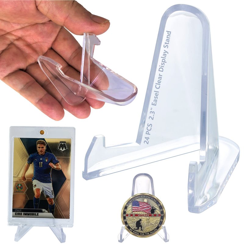 LRANFOW 24 Packs Card Stands Sports Card Holder, Card Display Stand for Display Graded Card Challenge Medals Casino Chips, 2.3 Inch Tall, Clear