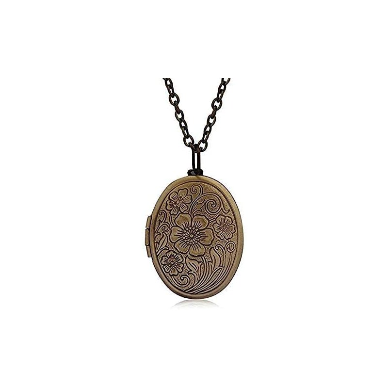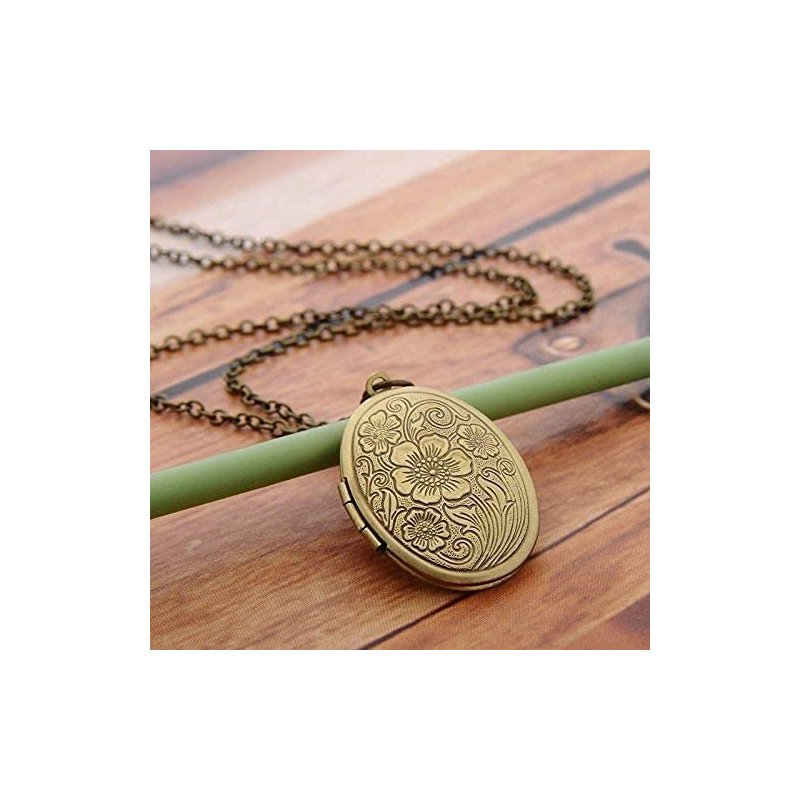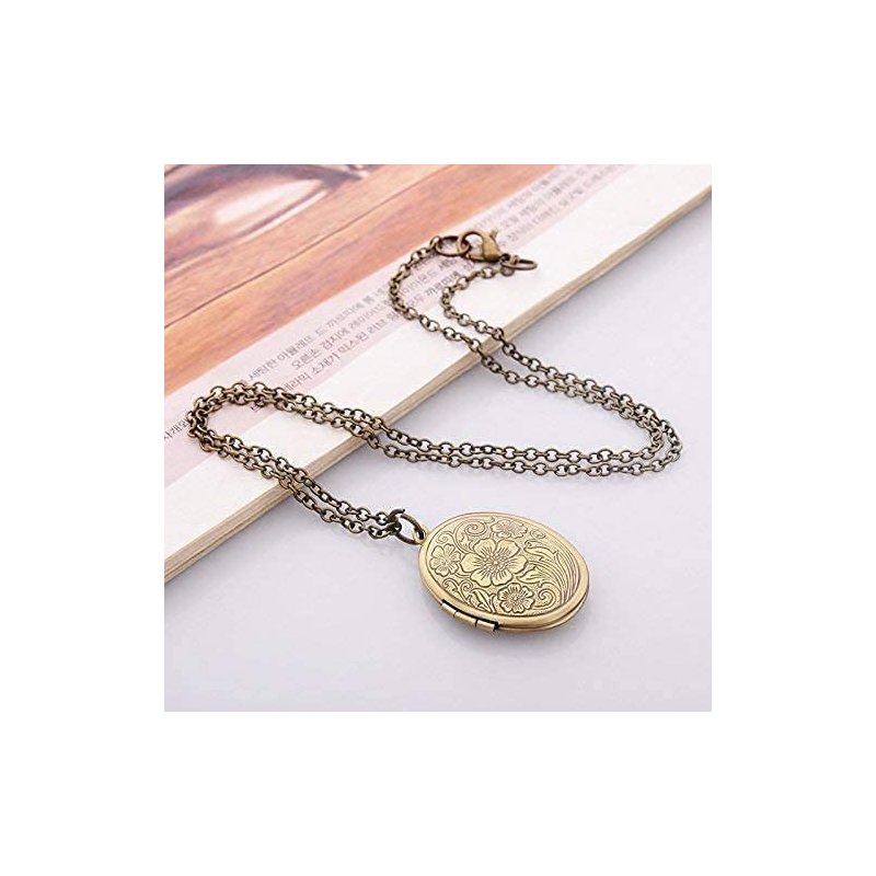 LRESJJIUJ Vintage Engraved Flower Locket Picture Pendant Necklace for Women Girls