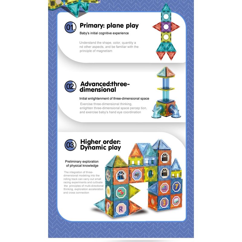 - EDUCATIONAL FUN: As children play, the magnetic tiles help develop important skills like problem-solving, creativity and hand-eye coordination in an engaging way.