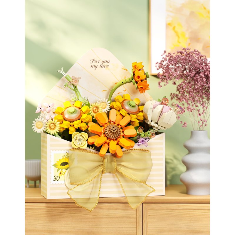 Lreyrous Flower Bouquet Building Sets, Building Blocks, Flower Creative, Small Particle Building Blocks, Toys, Gifts, Decorations, Yellow, 557 Pieces, Creative Build and Display Set for Adults