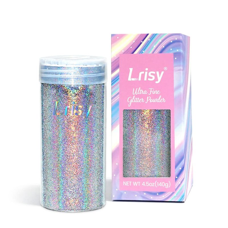 Lrisy Holographic Extra Fine Glitter Powder with Shaker Lid, Craft Glitter Sequins for Epoxy Resin, Slime,Tumblers,Nail&Painting Arts 140g/4.5oz (Ultra Thin Holographic Silver)
