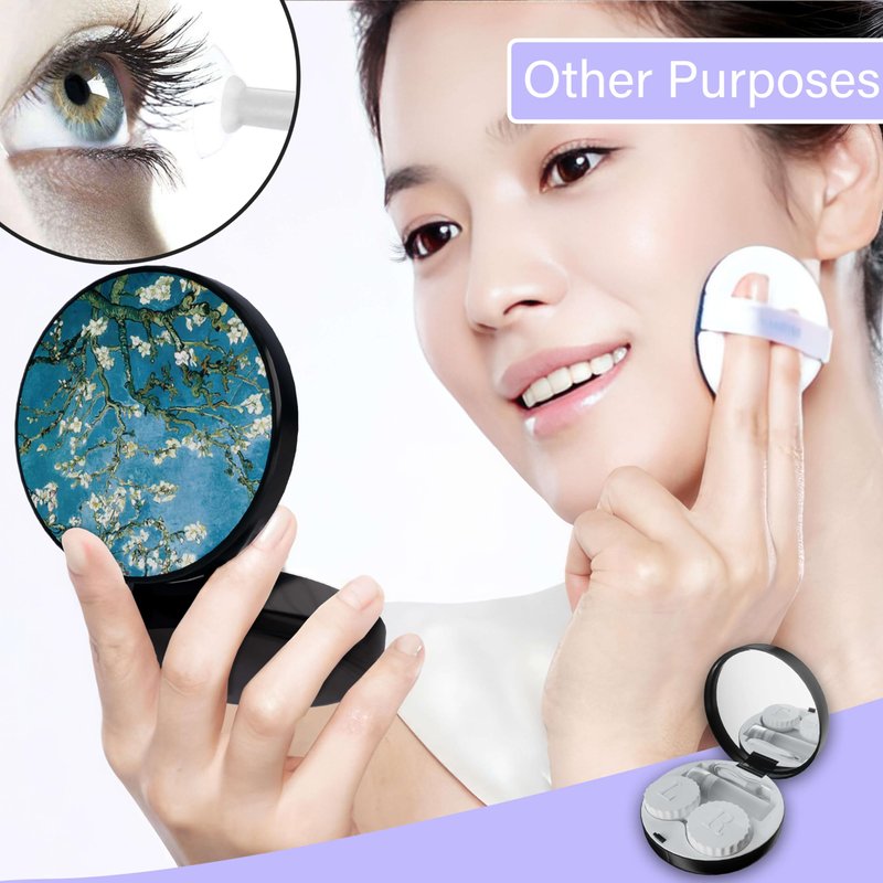 LRITER Contact Lens Case, Portable with Mirror, a Variety of Patterns and Shapes to Choose from, Auitable for Daily Makeup Office Travel Outdoor Use (Plum Blossom)